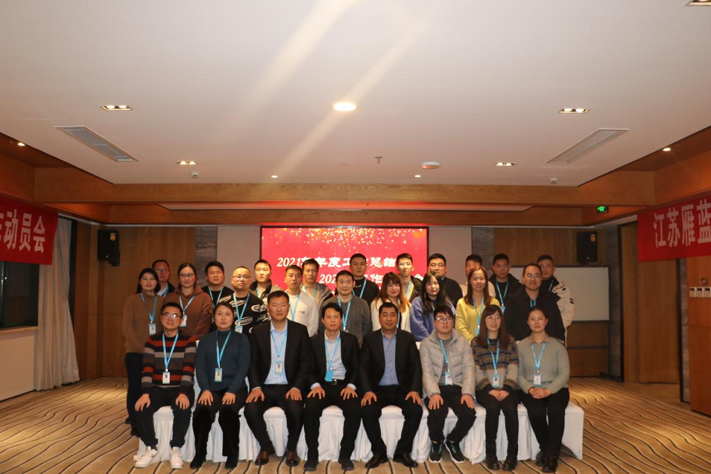 2022年1月14日,江蘇雁藍“2021年工作總結暨2022年工作動員會”順利召開。公司總經理張布偉、副總經理蔡同鋒,江寧本部各部門、江北分場所的相關負責人及業務部人員參加會議,副總經理周君主持會議。