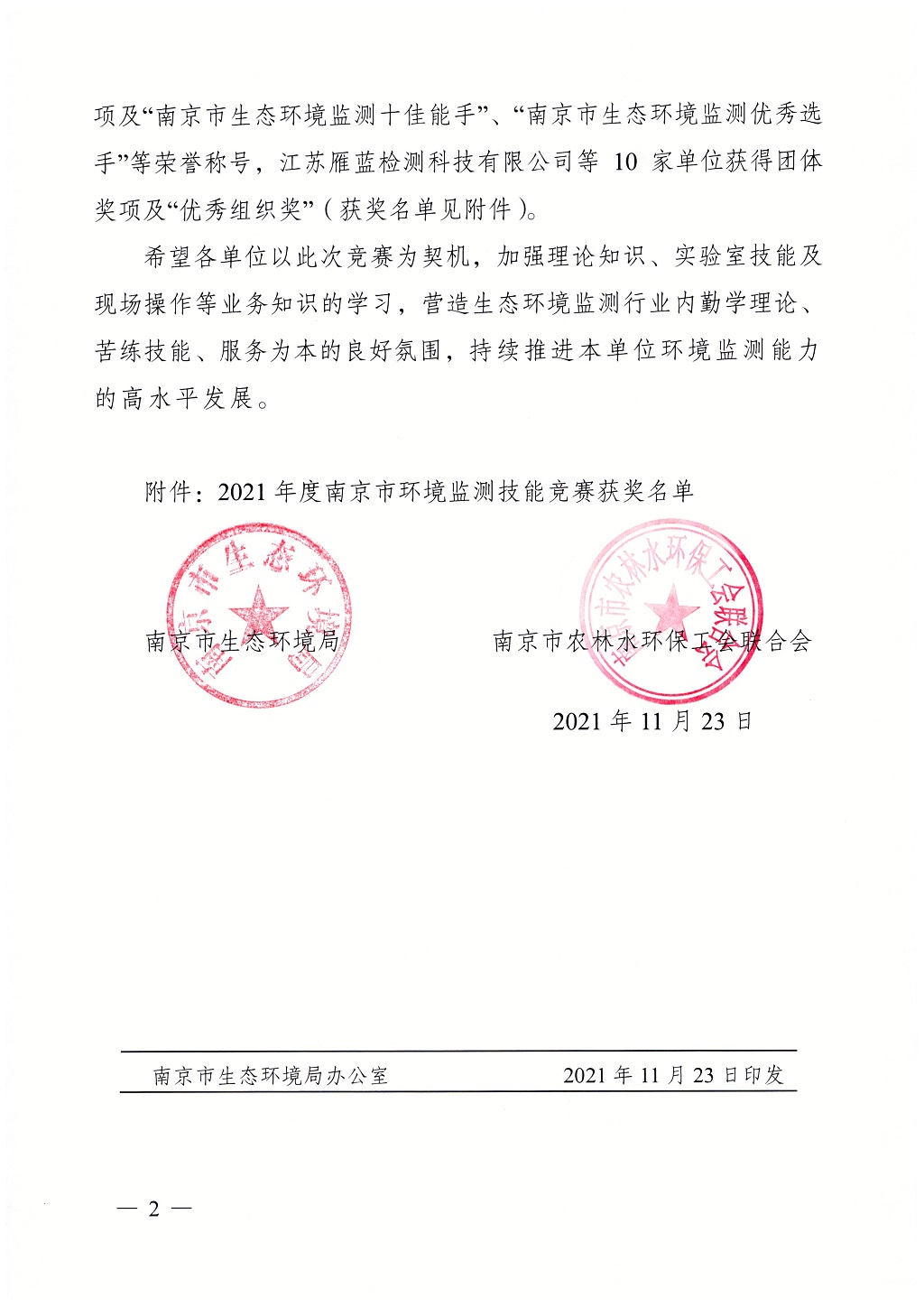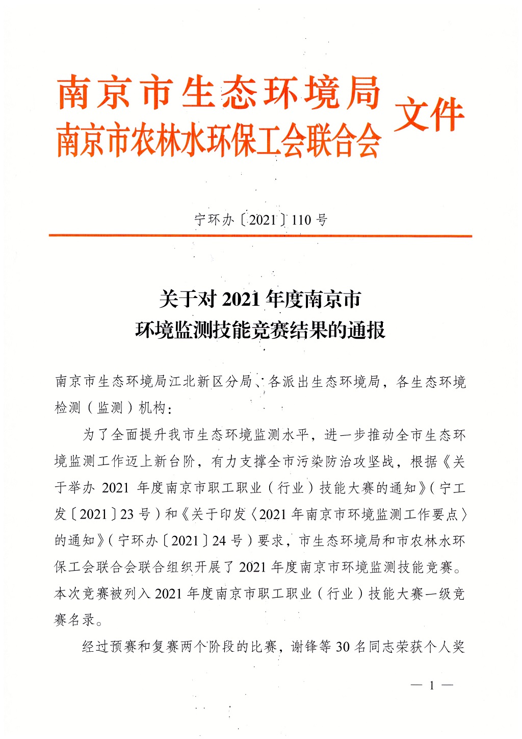 10月16日-27日,由南京市總工會、市人力資源和社會保障局、共青團南京市委主辦,南京市生態(tài)環(huán)境局和南京市農(nóng)林水環(huán)保工會聯(lián)合會承辦,江蘇省南京環(huán)境監(jiān)測中心協(xié)辦,南京環(huán)境保護產(chǎn)業(yè)協(xié)會支持的2021年南京市環(huán)境監(jiān)測技能競賽決賽在江寧橫溪街道正式開賽,來自市生態(tài)環(huán)境系統(tǒng)和社會化環(huán)境監(jiān)測機構的16支環(huán)境監(jiān)測隊伍在此聚集進行環(huán)境監(jiān)測大比武。本次競賽由南京市生態(tài)環(huán)境局局長錢鋒擔任競賽組委會主任,同時專設專家及監(jiān)督委員會,確保競賽結果公正公允。我司也派出選手參賽,取得團體一等獎和多個個人獎項的佳績!