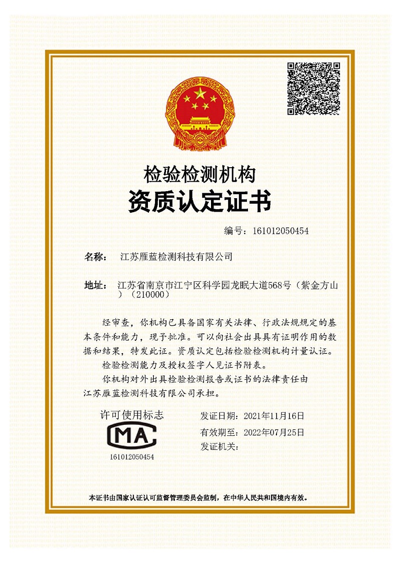 ? 江蘇雁藍(lán)檢測科技有限公司 2021 All Rights Reserved.